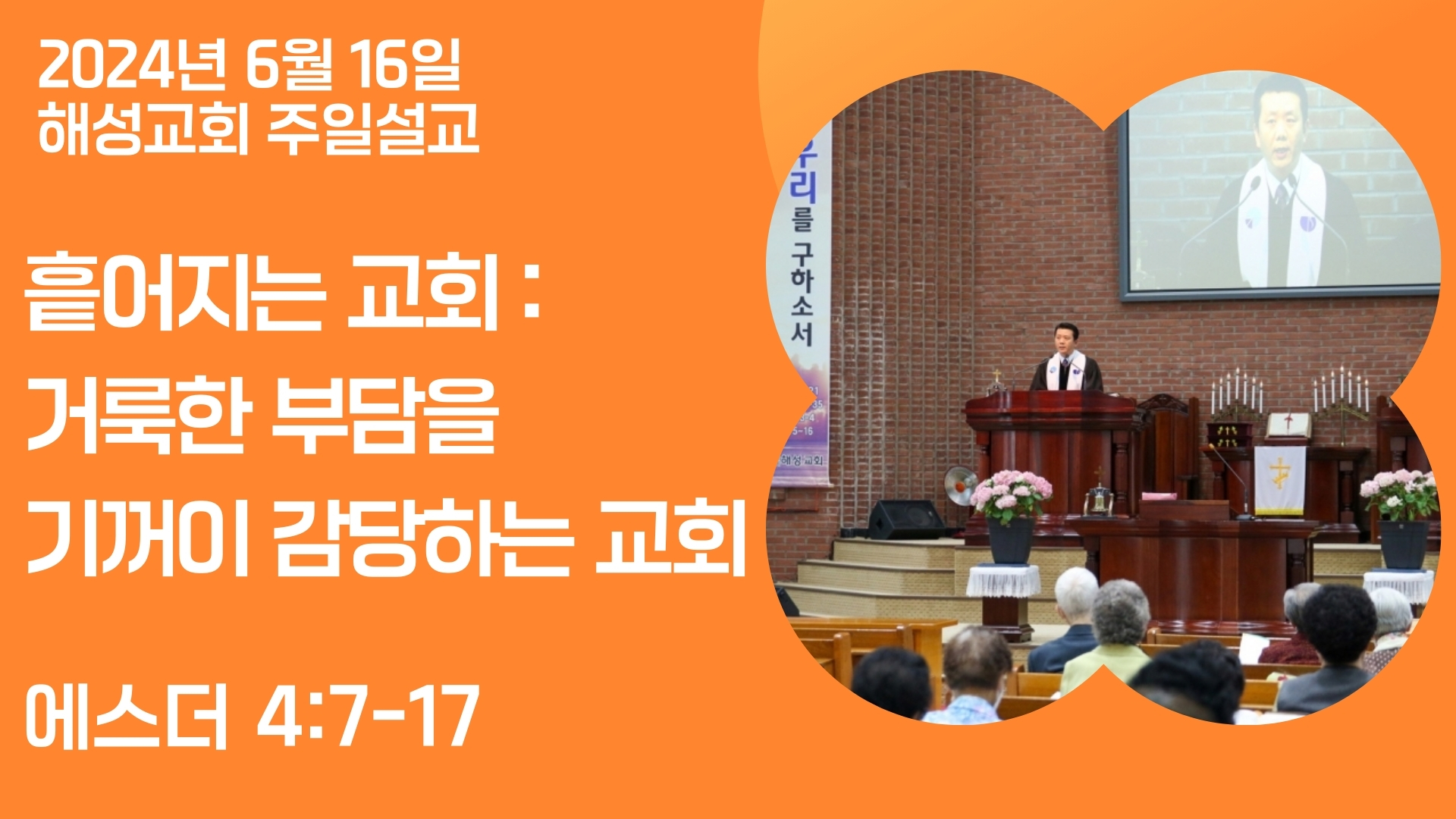 Èð¾îÁö´Â ±³È¸-°Å·èÇÑ ºÎ´ãÀ» ±â²¨ÀÌ °¨´çÇÏ´Â ±³È¸2024-6-16 | ¿¡½º´õ 4Àå 7Àý~17Àý |